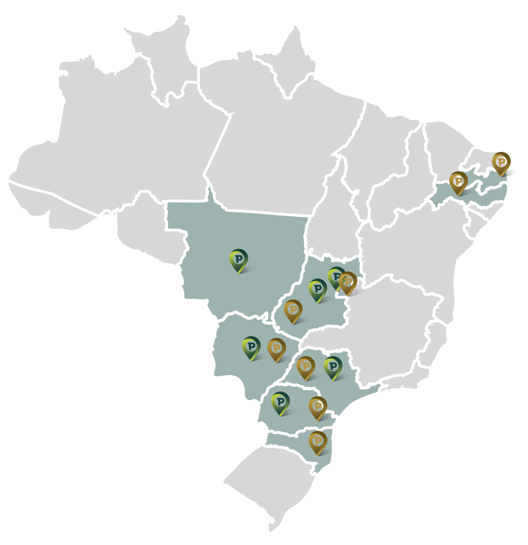 O Grupo Pluma possui filiais e centros de operação em oito estados do Brasil e no Distrito Federal, abrangendo uma grande diversidade de regiões e mercados internos.