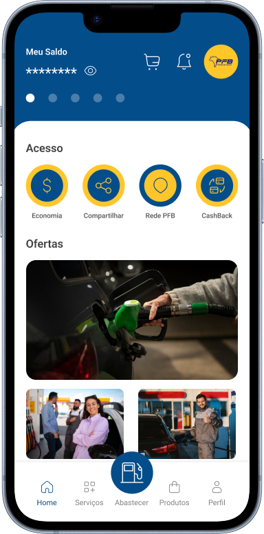 Acesse ofertas personalizadas e acompanhe as novidades da Rede de Postos PFB, tudo pelo app, de forma rápida e prática.